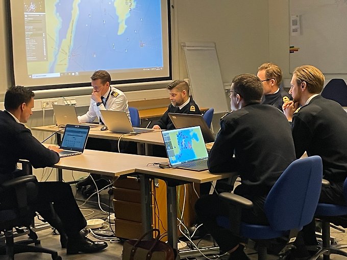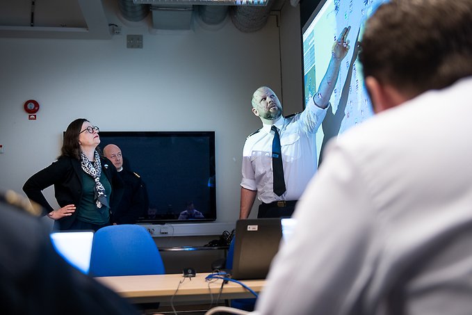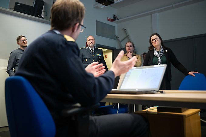Marint krigsspel och möte med studenter på masterprogrammet krig, säkerhet och politik stod på programmet när utbildningsminister Anna Ekström besökte Försvarshögskolan måndagen den 21 mars.