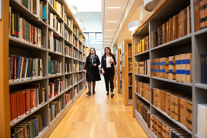 Besök i Anna Lindh-biblioteket. Bibliotekschef Catrin Mårdell och utbildningsminister Anna Ekström.