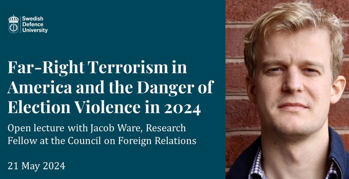 Jacob Ware är medförfattare till boken God, Guns, and Sedition: Far-Right Terrorism in America, utgiven vid Columbia University Press. I föreläsningen Far-Right Terrorism in America and the Danger of Election Violence in 2024 utgår han från boken och redogör för uppkomsten av högerextrem terrorism i USA – och hur den kan motverkas.