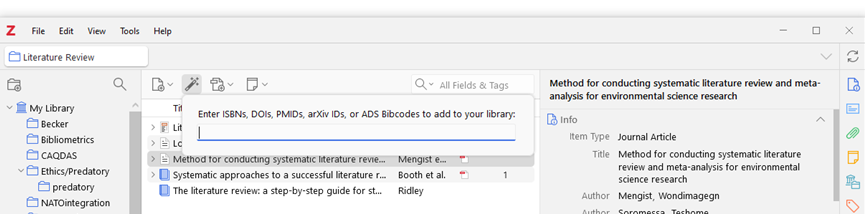 Zotero is a free reference management program that is easy to get started with. It works for Mac, Windows, and Linux using Chrome, Edge, Firefox, and Safari browsers. You can use it in conjunction with various word processors, such as Word, LibreOffice, and Google Docs.